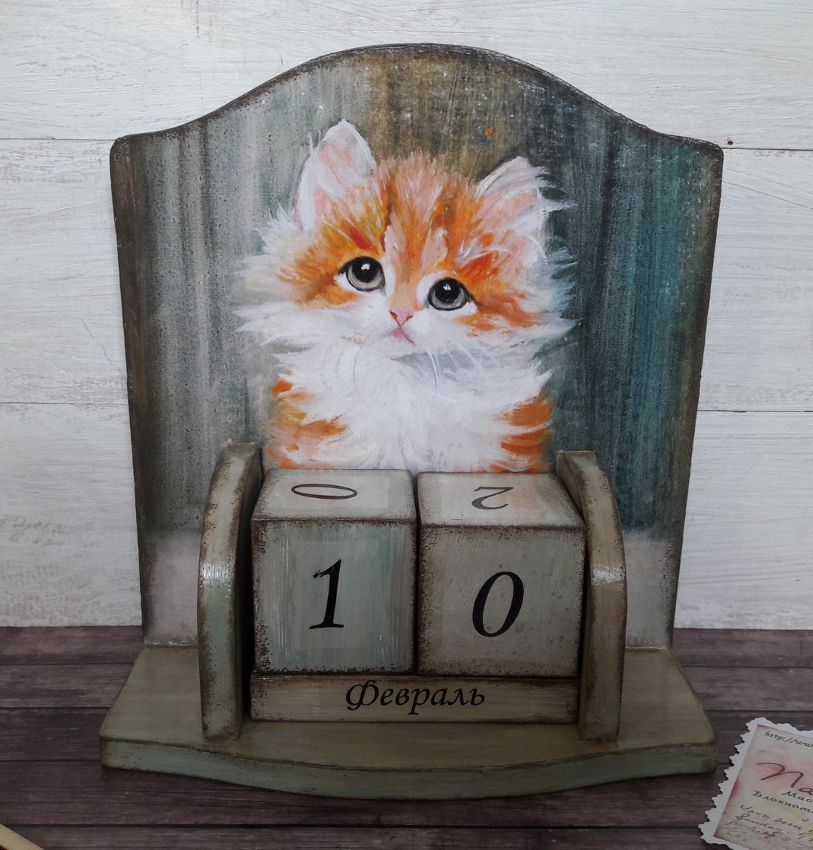 Лет тринадцать назад я сидела на одном интернет-форуме города N. Меня очень впечатлили работы местных мастериц, которые занимались декупажем. Я решила углубиться в эту тему, много читала о ней в интернете и посещала мастер-классы. Со временем у меня появились клиенты не только из моего родного города, но и из других регионов нашей страны. Сегодня я хочу представить вам некоторые свои работы и рассказать немного о них. Вечные календари. Для работы я использовала распечатки на цветном принтере и подрисовала фон. Даты и месяцы я обозначила с помощью распечаток на специальной клейкой плёнке. Ключницы В данной ключнице я использовала заготовку зеркала Икеа. Птички - это фрагменты салфеток, орнамент сделан с помощью трафарета и шпатлевки. Также у меня был заказ и на серию именных ключниц с котятами. Заготовки в виде букв мне делали на заказ Лейка А это фото рабочего процесса. Декор лейки из Икеа. В работе использовала декупажную карту, подрисовывала фон и применяла технику набрызга. Заказ