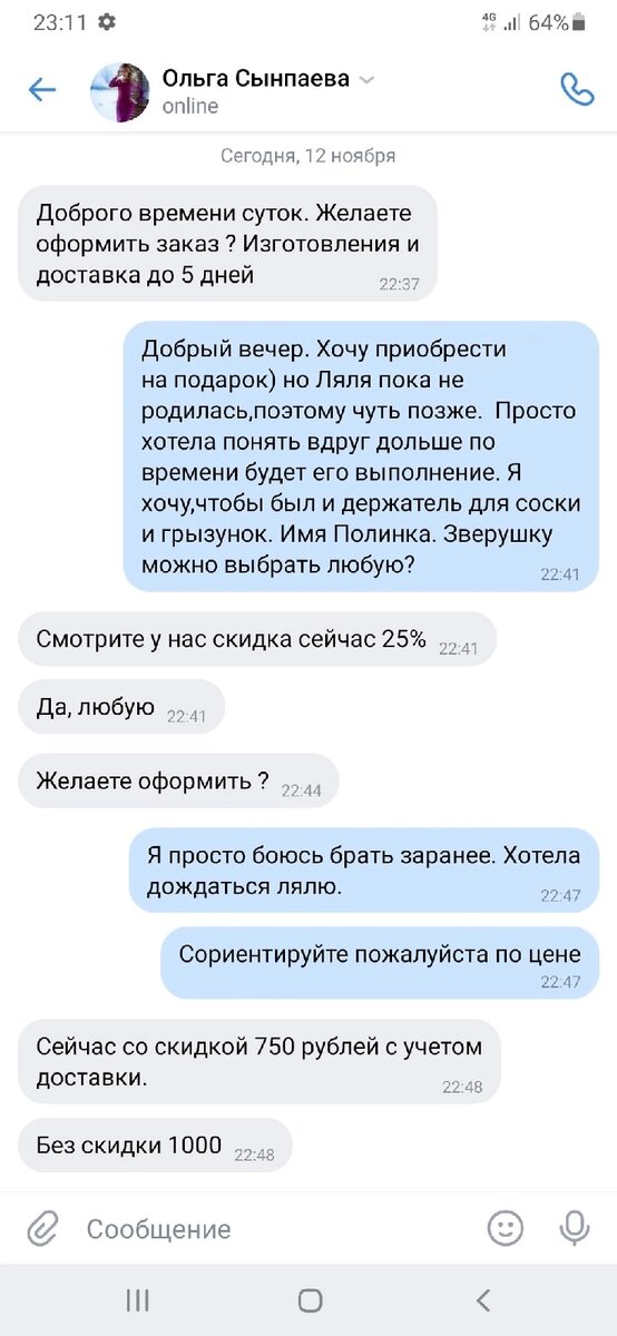 Будьте бдительны. Мошенники не дремлют и пользуются любыми возможностями, в том числе и услугами мастериц и изделиями ручной работы. Так произошло и в этой истории. 👇🤔👇 Расскажу свою историю. Девочки,этот развод стар как мир. Решила своей знакомой на рождение ляльки заказать держатель с грызунком ручной работы. Нашла страничку девочки,которая их делает и под постом в котором она описывала как и что,я оставила комментарий с вопросом о цене. Было уже поздно. Мне в лс пишет другая девочка (переписка в скринах) . Но я не поняла почему мне пишет эта баба,насторожилась. Зашла на её страницу - города нет,друзья накрученные и в друзьях нет той самой девочки,которая делает грызунки. Ясен красен,что это мошенница. Всегда проверяйте кто вам пишет хотя-бы по друзьям и записям на странице. Хорошо, что бдительная заказчица не повелась и не внесла предоплату. Помните, что заказы принимают только сами рукодельницы. Лучше писать заказ непосредственно в личных сообщениях самой мастерице. Иначе
