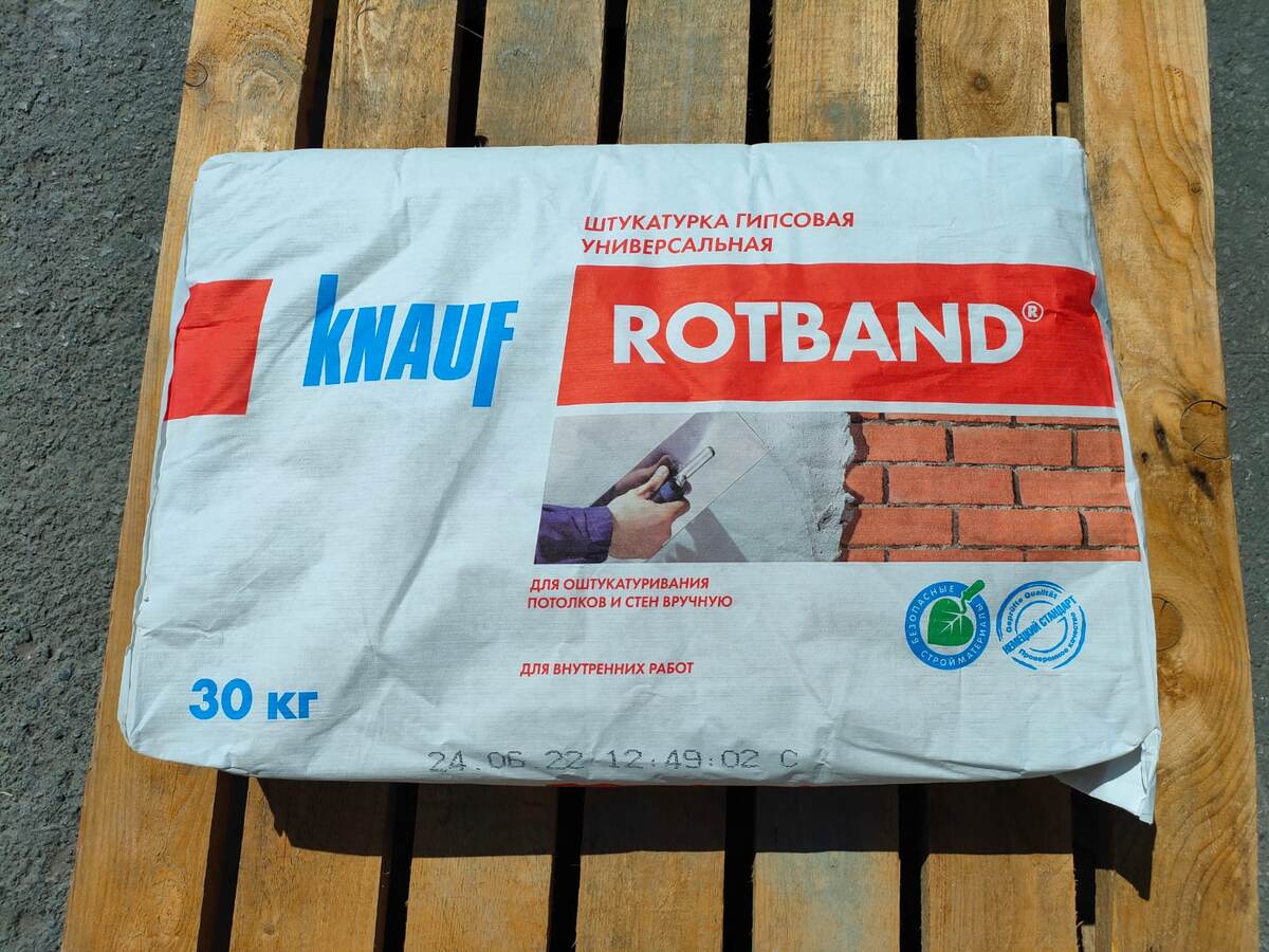 Универсальная гипсовая штукатурка КНАУФ-Ротбанд 30 кг - сухая штукатурная смесь для отделки на основе гипсового вяжущего с легким заполнителем и полимерными добавками, обеспечивающими высокую адгезию. КНАУФ-Родбанд используется для ручного оштукатуривания стен и потолков, применяется для внутренних работ.