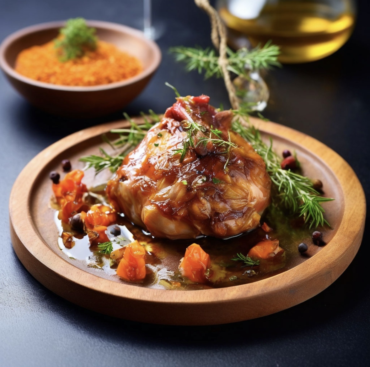 Конфи из кролика со специями: изысканное блюдо с богатым вкусом.