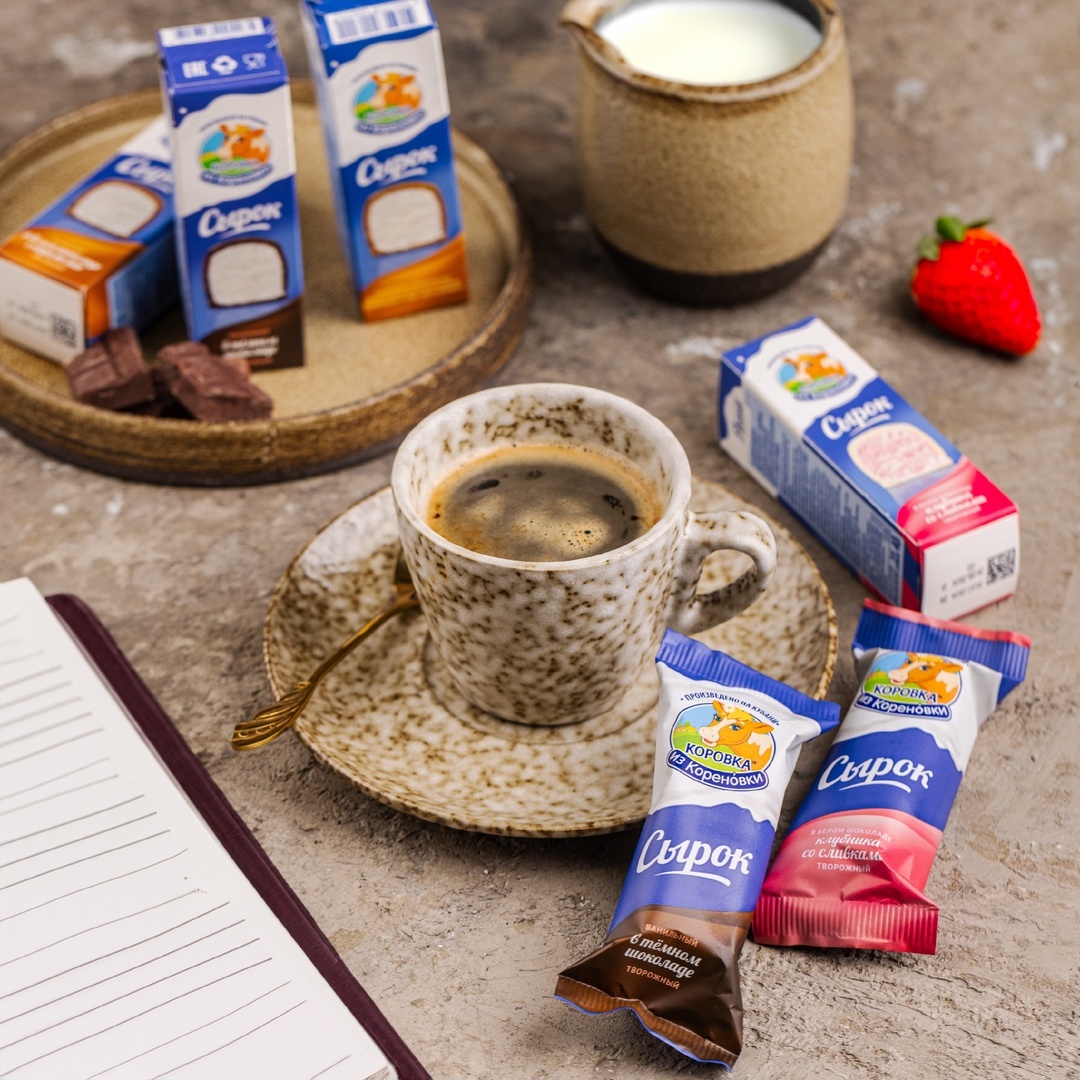 Остановить мгновение, настроиться на новые приключения и раскрасить предстоящий день особенным оттенком вкуса. С сырками от «Коровки из Кореновки» из отборного кубанского творога собственного производства сделать это легче легкого! В линейке представлены сырки: в молочном и темном шоколаде, в белом шоколаде с карамелью и шоколадный в темном шоколаде. А любителям ягодных вкусов стоит обратить особенное внимание на клубнику в белом шоколаде и апельсин.