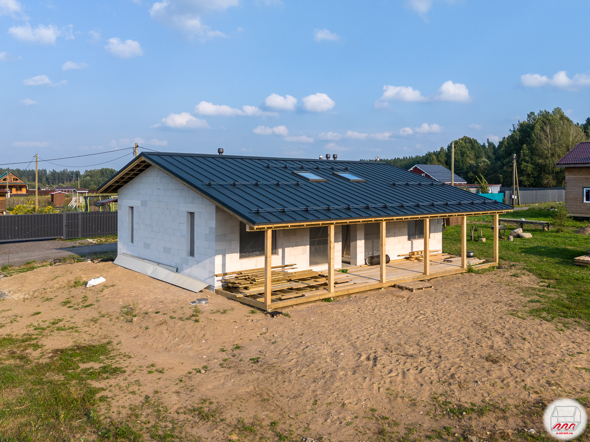 Недавно закончилось строительство одноэтажного дома из газобетона на фундаменте УШП в Ягодном: