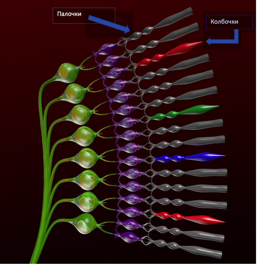 ПОСТ № 20. Представьте, как выглядел мир, если мы бы жили в черно-белом кино. А ведь такое могло быть, если бы благодаря эволюции, у человека не появилось цветное зрение. Различать цвет мы можем из-за колбочек, таких фоторецепторов, которые находятся на сетчатке глаза, помимо них у нас есть ещё палочки, тоже фоторецепторы, которые обеспечивают сумрачное зрение, так как более чувствительные к свету.