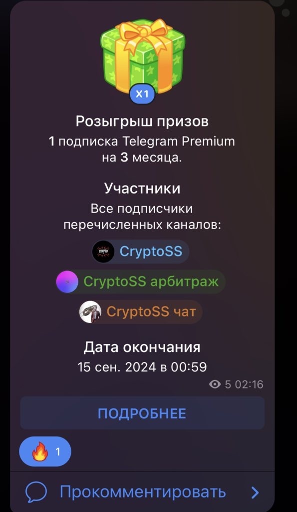 У нас на канале проходит 2 розыгрыша телеграмм премиум. Один за подписки второй за выполнение одного действия.