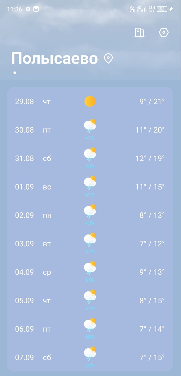 Ух, и бодрый денёк сегодня! Даже если быть точной начало дня.😀 Проснулась рано, хотя на работу только к 13 ч. Испила чашечку кофе, в планах было написать статью. Мельком глянула прогноз погоды и ужаснулась. Осталось пару теплых денечков без дождя и всё, товарищи: осень, прохлада и дожди. Для наглядности фото⬇️ И ничего плохого в этом нет, осень же 😅 Но мой огород, увы, требует регулярного ухода за собой. И опять же, увы, регулярно его не получает😅 А так, по настроению хозяйки. Поэтому сдвинула немного планы и потопала в огород. После вчерашней тренировки нещадно болели мышцы на ногах. После огорода стали болеть еще и на руках. И спина ощущаться 😁 Но зато столько бодрости и сил появилось, мама дорогая. Да и настроение прям ух! Заиграло новыми красками. 😀 Появились даже какие-то наполеоновские планы. Что вот приеду после работы и опять пойду в огород.💪🏻 Это же физическая активность, а значит, то, что надо. Но, зная себя, скорее всего, пыл свой по умерю и