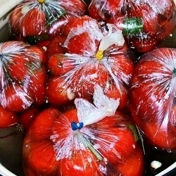 Помидоры в пакетах — это один из самых простых и быстрых способов соления помидор в домашних условиях. Вкусная, остренькая закуска к вашему столу без лишних заморочек! 🍅Ингредиенты: - 1 кг. помидор - 1 ст. л. соли - 1,5 ч. л. сахара - Укроп, - 1-2 головик чеснока. 🥫Приготовление: Необходимо выбрать томаты примерно одно размера, чтобы помидорчики просолились одновременно. Помидоры помыть, срезать у них носики, сложить в пакет. Чеснок очистить, измельчить и добавить в подготовленные помидоры. Измельчить: либо зелень укропа, либо его сухие соцветия. И в первом, и во втором случае получится вкусно. Зелень не такая жесткая, а семена очень душистые. Добавляем соль и сахар. Завязать пакет и хорошо встряхнуть в нем помидоры. Поместить еще в один пакет и хранить в теплом месте, периодически встряхивая. Через пару суток на вашем столе очень вкусные, пряные, быстро соленые помидоры с чесноком и укропом. Совет. В среднем, спелые помидоры готовятся около 2 суток, можно также засолить и зе