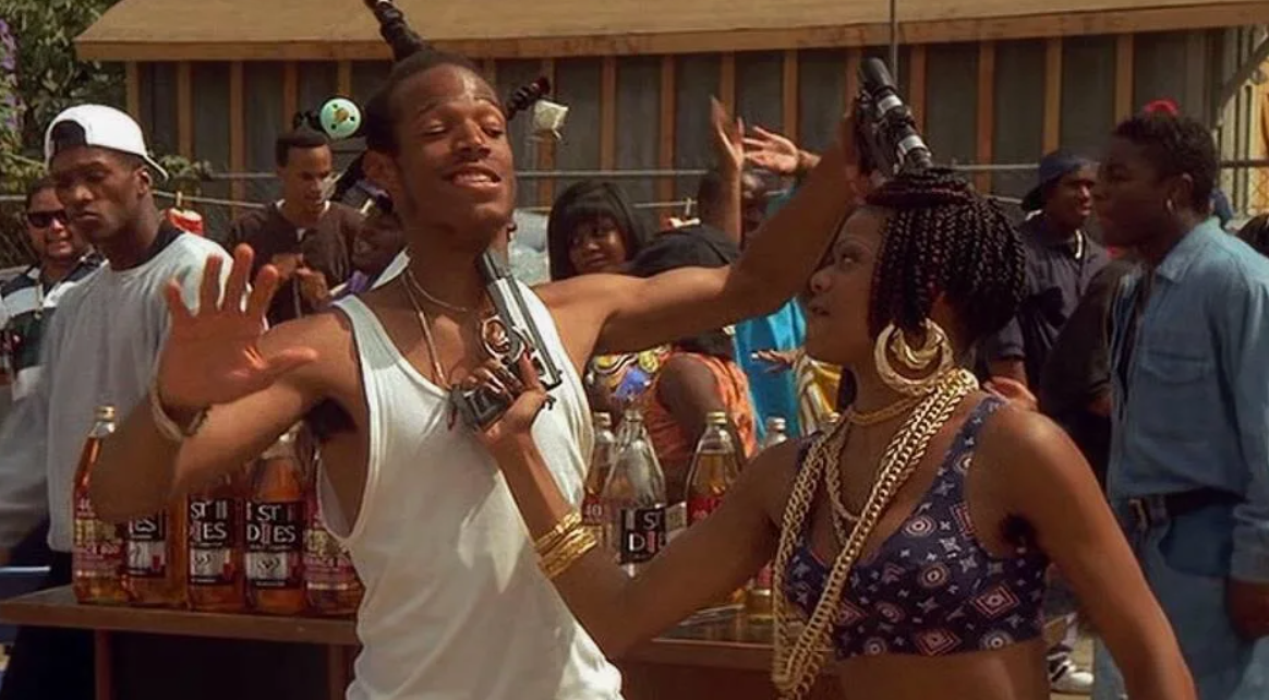 Кстати, как известно, наименование комедии скомпилировано из названий пародируемых в ней сразу нескольких популярнейших в начале 1990-х «черных» драм. В том числе, «Угроза обществу» (Menace II Society), «Сок» (Juice), и собственно «Южный централ» (South Central), ставший у нас в прокате почему-то именоваться просто «Против течения».