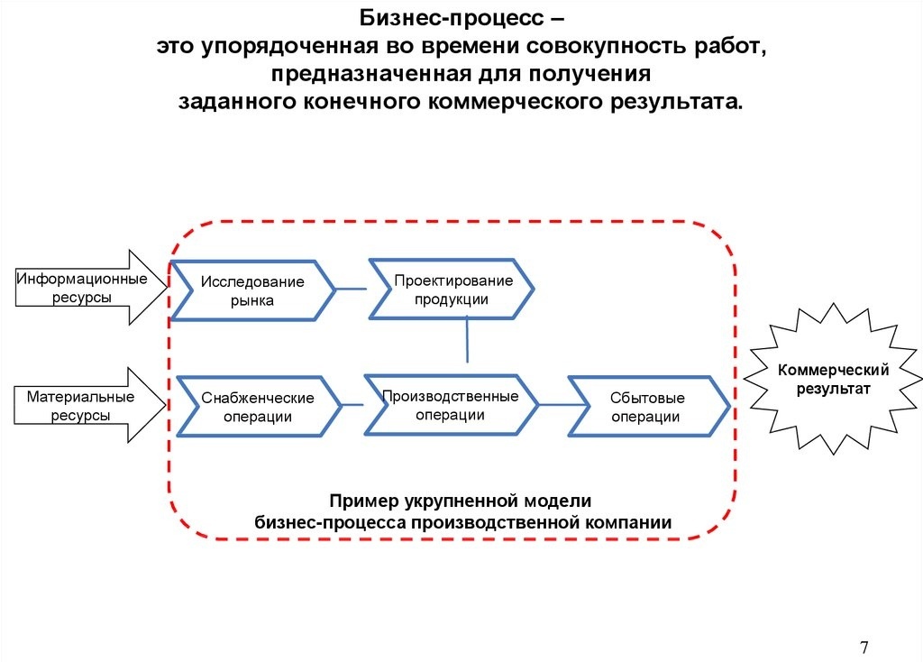 Бизнес-процесс - это упорядоченная во времени совокупность работ, предназначенная для получения заданного конечного коммерческого результата. Каждый бизнес-процесс предприятия направлен на достижение конкретной цели в иерархии всех целей компании. Согласованная иерархия целей компании является элементом стратегии компании и определяется глобальными целями компании. Первый принцип оптимизации бизнес-процессов: Каждый выход процесса должен согласован со входом последующего, другими словами информация порождаемая первым процессом должна быть востребована вторым. Иначе как следствие: Второй принцип оптимизации бизнес-процессов: За результат работы каждого бизнес-процесса должен отвечать только один исполнитель. Иначе как следствие: Третий принцип оптимизации бизнес-процессов: Результат работы каждого бизнес-процесса должен быть нацелен на достижение конкретной локальной цели. В свою очередь локальные цели, должны быть согласованны и увязаны между собой и направлены на решение глобал