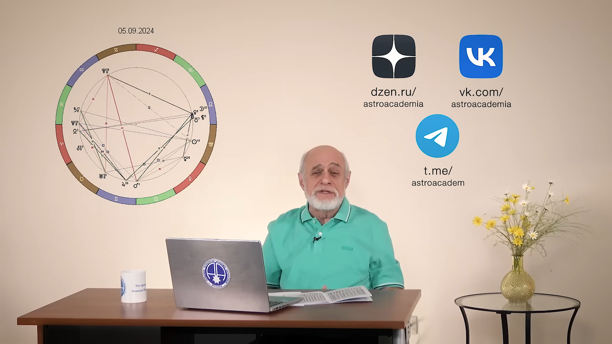 Свой прогноз астролог начал с рекламы. Продолжается набор в его академию, дистанционное отделение начинает работать с 1 сентября, а очное - с октября. Это из 35 набор. Они дают настоящую полноценную профессию.