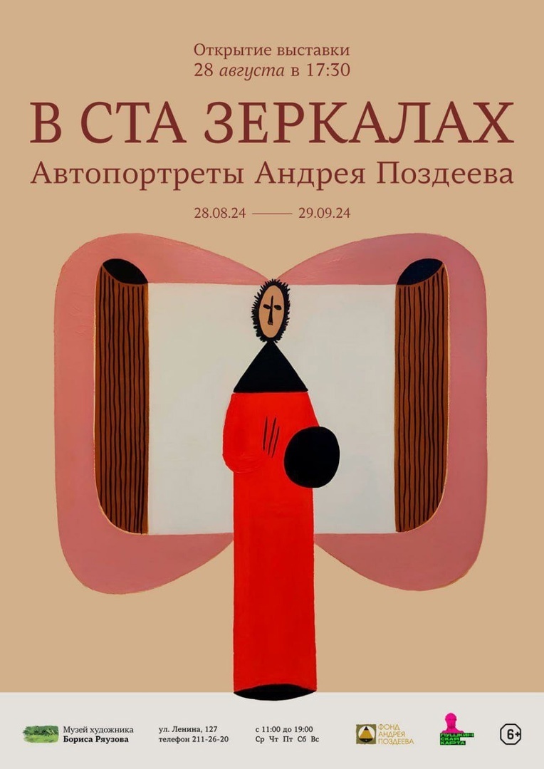 В красноярском музее Бориса Ряузова откроется выставка автопортретов Андрея Поздеева «В ста зеркалах». Событие приурочили к 99-летию со дня рождения художника. фото: vk.com/muzei_ryauzova. Как сообщили в музее, в экспозиции представлены как большие живописные полотна, так и камерные автопортреты. Также посетители увидят линогравюры и рисунки Андрея Поздеева, хранящиеся в мастерской и частных коллекциях. Зал музея Ряузова вместил небольшое количество работ в то время, как в творчестве Поздеева насчитывается около сотни автопортретов. Вернисаж состоится 28 августа в 17:30, вход свободный. Выставка будет работать до 29 сентября 2024 года. Музей художника Бориса Ряузова (переулок Ряузовский/Ленина, 127) открыт с 11:00 до 19:00, со среды по воскресенье. Справки по телефону: 211-26-20.