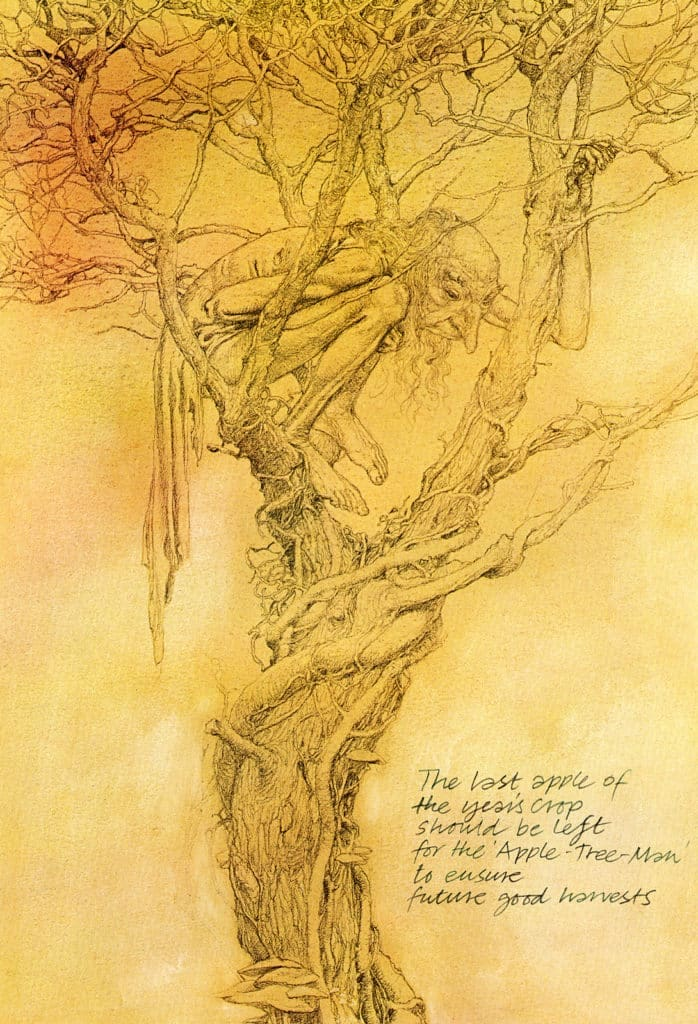 В английском фольклоре Яблочный человек — это имя, данное духу самой старой яблони в саду, и в котором, как полагают, обитает плодородие сада. Говорят, что в каждом саду есть свой Яблоневый Человек. Потому что он следит за цветением и созреванием плодов и заботится о благополучии фермера, чтобы обеспечить хороший урожай. Есть много историй об этом духе. Он пугал любого, кто входил в сады во время сбора урожая, кто намеревался украсть его яблоки. Многие другие вспоминали о позитивных встречах с этим духом. Есть истории о том, как Яблочный Человек вознаградил одного человека, который предложил свою последнюю кружку глинтвейна деревьям в своем саду в канун Рождества. Он открыл ему местонахождение зарытого золота, значительно улучшив его состояние.