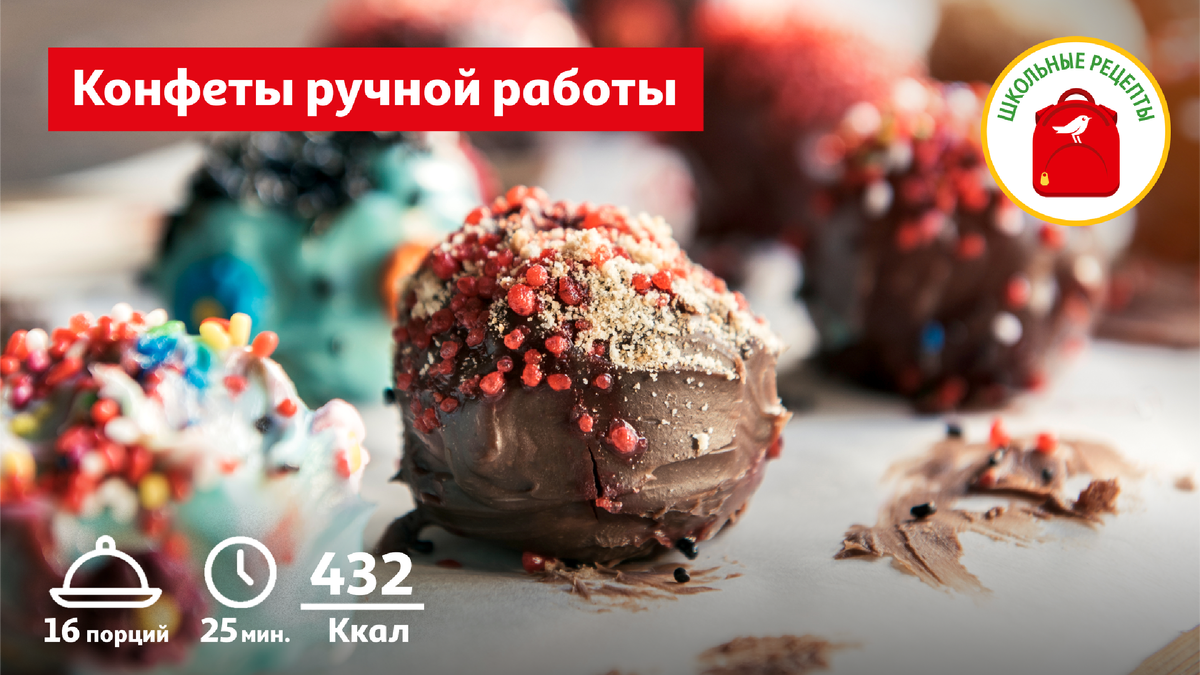 Сладости своими руками — вдвойне вкуснее. А в качестве подарка — вдвойне приятнее! Скоро 1 сентября: порадуйте учителя необычным десертом вместо привычных цветов (или вместе с ними). Такой знак внимания точно надолго останется в памяти! Финики — 200 г; Смесь орехов — 100 г; Кокосовая стружка — 25 г + для украшения; Какао-порошок — 1 ст. л. + для украшения; Дробленые орехи — для украшения; Шоколад — 1 плитка; Сливочное масло — 25 г; Кондитерские посыпки — для украшения. Готовим! В чашу блендера выложите орехи и кокосовую стружку, измельчите до однородности. Из фиников удалите косточки, нарежьте произвольно и добавьте их в чашу блендера к орехам. Чтобы добавить конфетам шоколадной нотки, можно добавить 1 ст. л. какао. Снова взбейте — масса станет однородной и слегка липкой. Поломайте плитку шоколада и растопите — можно отправить в микроволновку на 10 секунд. После добавьте сливочное масло и хорошо перемешайте. Сформируйте конфеты: возьмите немного смеси с помощью чайной ложки и скатайте