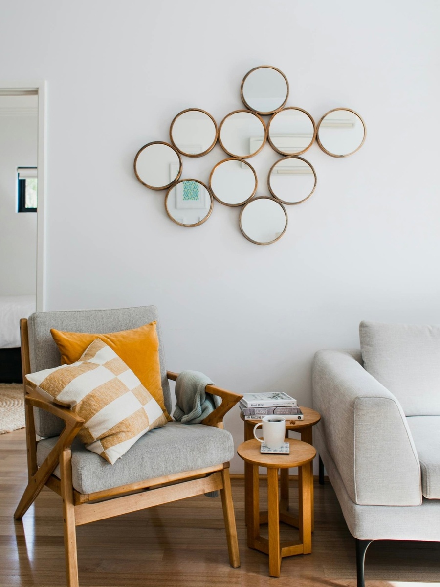 Зеркала не только украшают стену, но и визуально увеличивают пространство, добавляя свет и глубину. Выберите зеркало с интересной рамой или создайте композицию из нескольких маленьких зеркал.