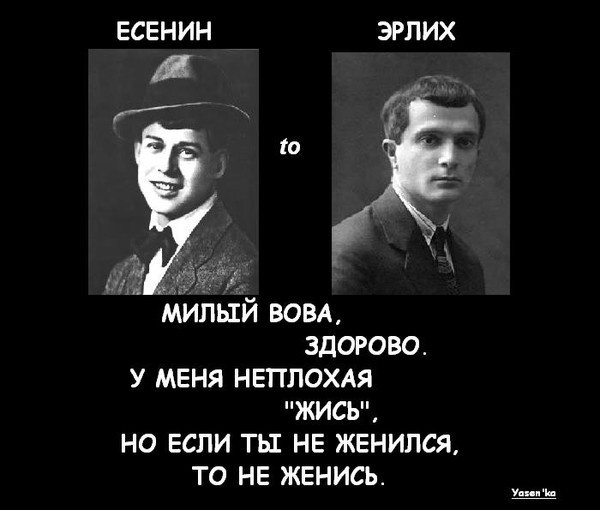 — Знаешь, почему я — поэт, а Маяковский так себе — непонятная профессия? У меня родина есть! У меня — Рязань! Я вышел оттуда и, какой ни на есть, а приду туда же! А у него — шиш! Вот он и бродит без дорог, и ткнуться ему некуда. Ты меня извини, но я постарше тебя. Хочешь добрый совет получить? Ищи родину! Найдешь — пан! Не найдешь — все псу под хвост пойдет! Нет поэта без родины!