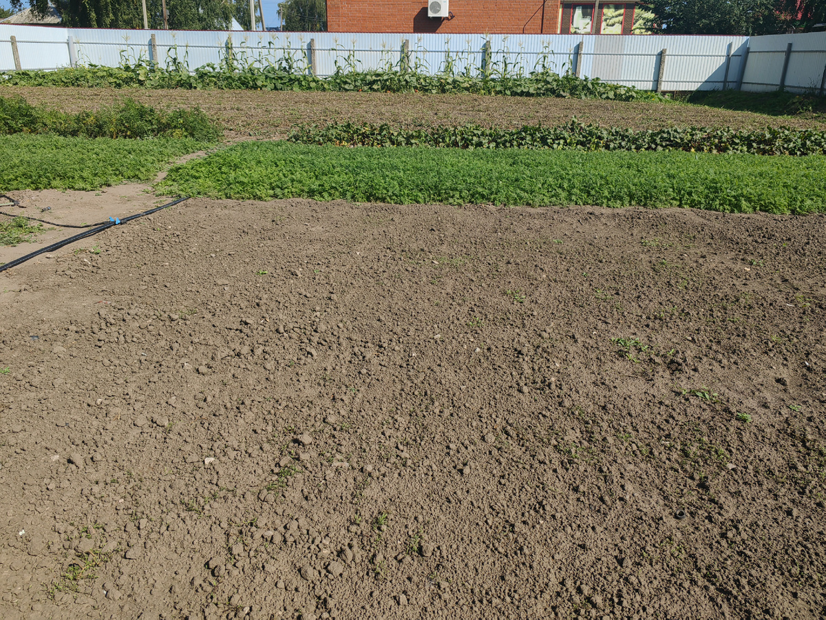 Сегодня начали копать картофель, уже неделю назад очистила томатные грядки, убрала арбузы, дыни и огурцы. На грядках остались: капуста, морковь, свёкла, кукуруза и тыква. На втором огороде ещё не копали картофель. Очищаю грядки и сразу сею сидераты. Именно с сидератов начинается подготовка огорода к новому сезону. Из сидератов я выбрала фацелию, ведь она является хорошим предшественником для всех культур, не накапливает вредителей и болезней и подавляет рост сорняков. Хорошо очищаю грядки от растительных остатков и сорняков. Далее слегка рыхлю почву тяпкой и разбрасываю семена фацелии, затем заделываю их в почву граблями. Если по прогнозу дожди, то семена дружно прорастают в течение недели, а если осадков не ожидается, то обязательно нужно поливать. Без полива всходов не будет. У нас сейчас жарко и без осадков, поэтому почти каждый день поливаю фацелию. Фацелия всходит и растёт очень быстро. Она улучшает структуру почвы и увеличивает урожай. В октябре (зависит от погоды) н