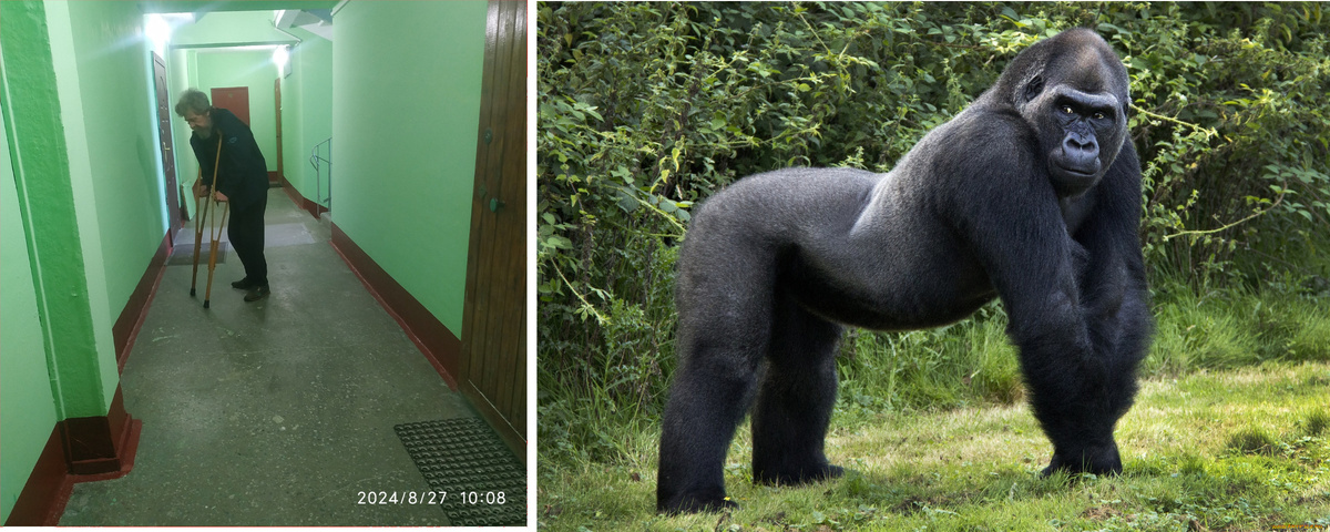 Ну не, я совсем не про улицу. До улицы мне сейчас элементарно не дойти. Даже просто так не дойти, я уж молчу о том чтобы спустить по лестнице коляску. Как я хожу по квартире это отдельная тема, но маманя всё это наблюдая живьём запретила мне даже и думать про коляску. Ну волновать старушку не хотелось, решил просто так погулять по этажу. Он у нас большой. Нет-нет, справа вовсе не я. То есть помечтать-то оно, конечно, можно но до персонажа справа мне ещё качаться и качаться. Я слева. На костылях.