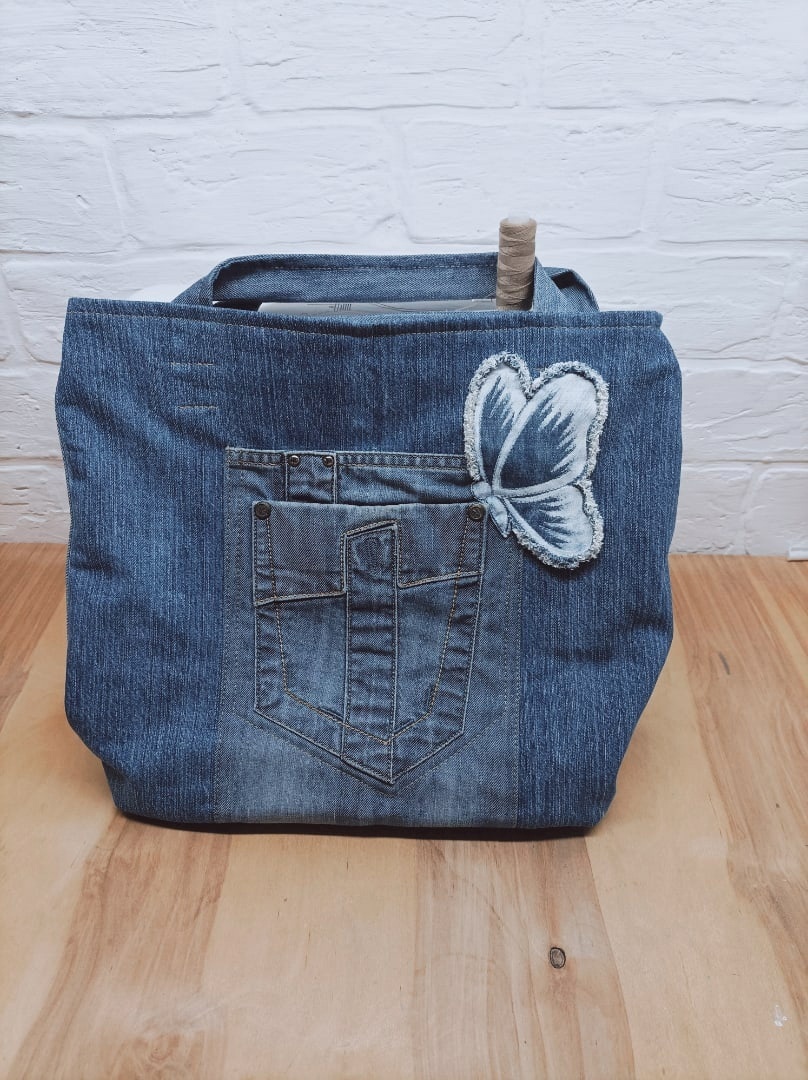 Недавно лента подкинула мне очередную рекламу школы по пошиву сумок, в которой предлагалось прийти на МК сумки с бабочкой. Признаюсь, меня привлекла именно бабочка. Но на прямой эфир я не попала. Перемотала запись на интересующий момент про бабочку. И стало грустно. Блогер рассказала, как делается такая аппликация двумя способами: на вышивальной машине и на бытовой машине, на которой есть широкий зигзаг. - А что же делать тем, у кого нет ни того ни другого? Ответ один – приходите на обучение, научим. Я может и пошла бы на обучение, если бы моей целью были только вышитые сумочки, и этот блогер не сообщила, что считает джинсу - капризным осыпающимся материалом. Так и хотелось спросить: -Вы серьезно считаете, что джинса- капризный материал? Или это просто маркетинговый ход для рекламы материалов, с которыми учат работать в школе? Не знаю, что мне ответили бы. Но именно эти слова про капризность джинсы и стали спусковым крючком В голове, как разноцветные бабо