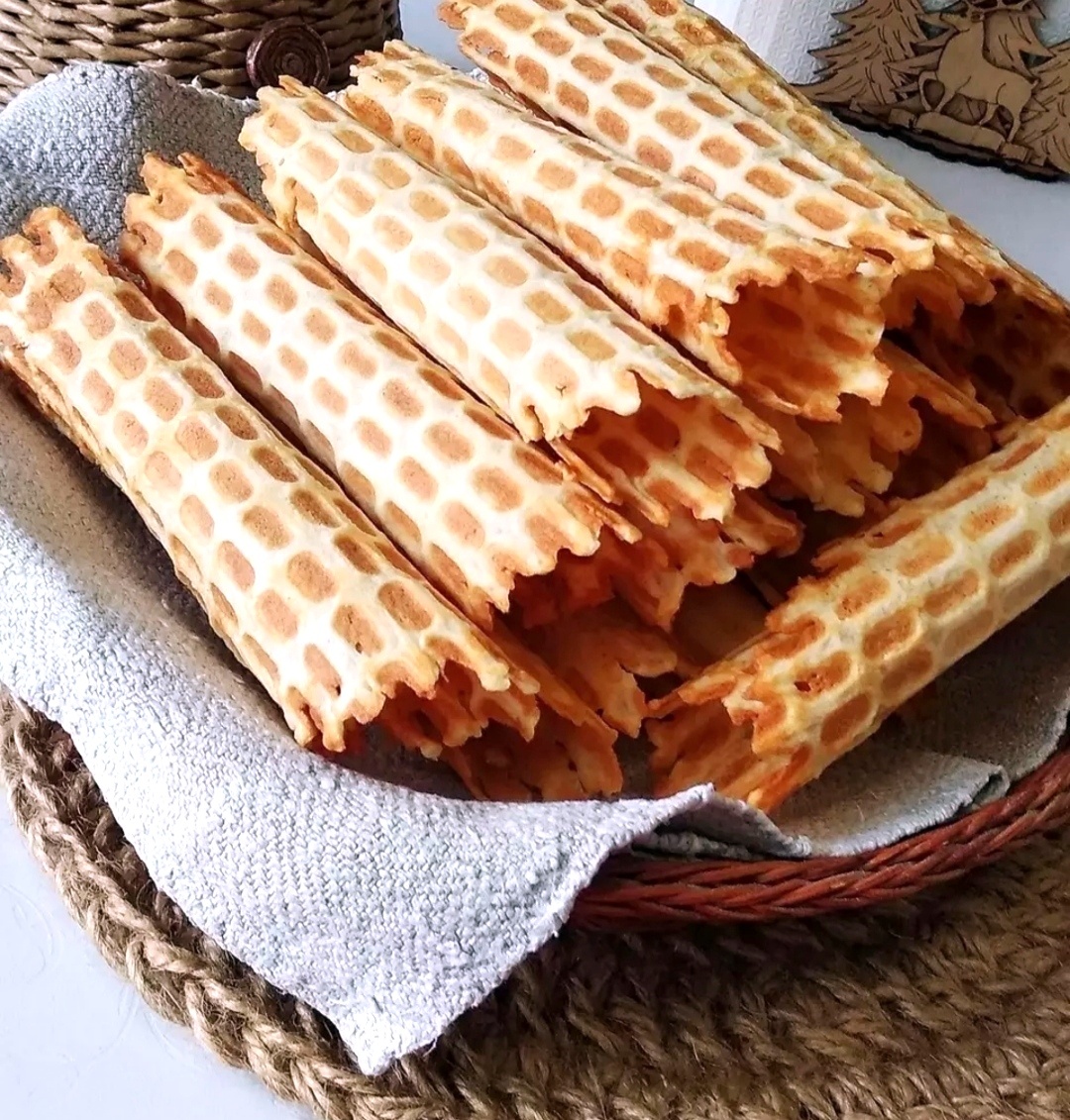 Процесс приготовления не меняется в зависимости от модели: тесто выливаете в вафельницу, закрываете крышку и немного ждете, затем быстренько сворачиваете вафлю желаемой формы. Можно сделать трубочку с любой начинкой: крем, сгущенка, варенье. Такие лакомства очень понравятся детям, а взрослые вспомнят вкус детства. Состав/Ингредиенты: Мука-1 стакан Сахар-1 стакан Маргарин-200 грамм Ваниль-по вкусу Яйца-4 штуки 1. В миску выложите размягченный маргарин, который можно заменить маслом. 2. Добавьте сахарный песок и ваниль, хорошенько все перемешайте. Вбейте куриные яйца. 3. Просейте в миску муку и тщательно смешайте все составляющие. 4. Получится тесто консистенции жидкой сметаны, оно сразу готово к выпеканию. 5. Смажьте вафельницу растительным маслом - 1 раз перед началом выпечки. Вылейте столовую ложку теста в центр и закройте крышку, готовьте до звукового сигнала, около 45-60 секунд. Готовые вафли снимите и сразу сверните в трубочки. Приятного аппетита! Спасибо за просмотр и не заб