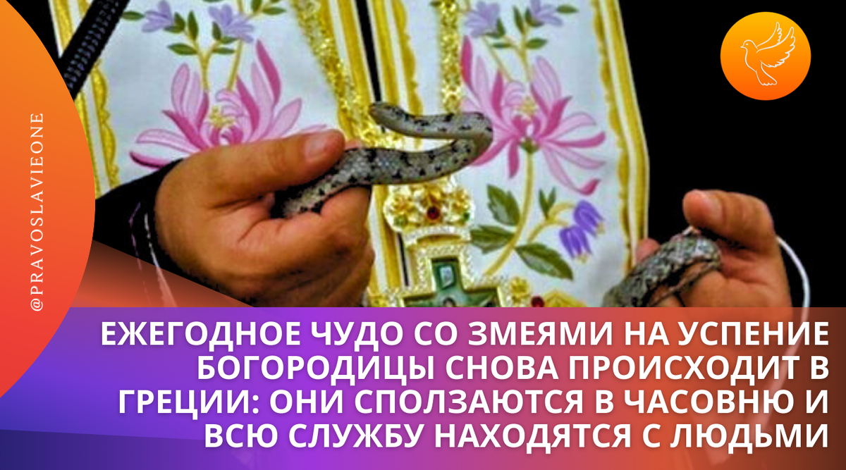 На Кефалонии, небольшом острове в Греции, ежегодно происходит событие, вызывающее удивление во всем мире. Не только захватывающие дух пейзажи делают его известным, но и чудесное явление в деревне Маркопуло, где на праздник Успения Пресвятой Богородицы буквально сползаются все змеи, получившие название «богородичные». Эти змеи украшены отметиной в форме креста на голове.