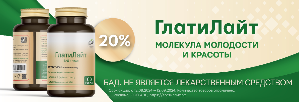 Только до 12 сентября на сайте Здравсити у вас есть уникальная возможность приобрести ГлатиЛайт с 20% скидкой: https://zdravcity.ru/p_glatilajt-kapsuly-0-545g-60sht-0196917.html