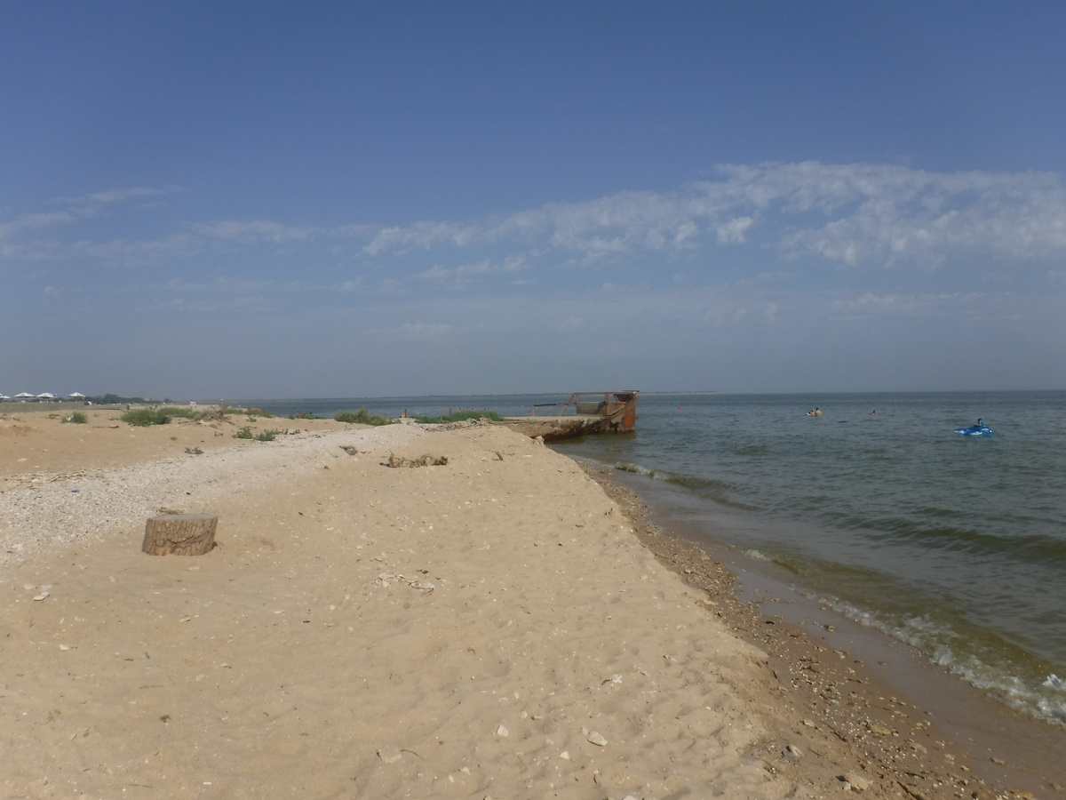 Прогуливаясь по песчаным пляжам приазовского селения Рожок можно обнаружить три корабля, которые хоть и не парусники, но столь же реальны, сколь и призрачны. Все они частично погружены в воду, а частично увязли в песке. Это -баржи. Вернее, то что от них осталось. Вот - первая: Так она входит в воду: Останки второго судна лежат неподалеку. А в отдалении - третье судно, остатки которого очевидно использовались как причал. За этой баржей на песке вдруг возникают три серых корабля, которые кажутся вполне годными к использованию. Но - нет, они - тоже мертвые, пустые посудины. Если с последними тремя кораблями всё ясно - это рыболовецкие суда, принадлежавшие располагавшейся здесь в советские времена артели, тоже канувшей в небытие, то три баржи кажутся загадкой. Откуда они здесь взялись и для чего. В свое время читатели краеведческого портала "Меотида и окрестности" поломали немало копий, выясняя этот вопрос. Высказывались в том числе предположения, что эти баржи выбросило на берег бур
