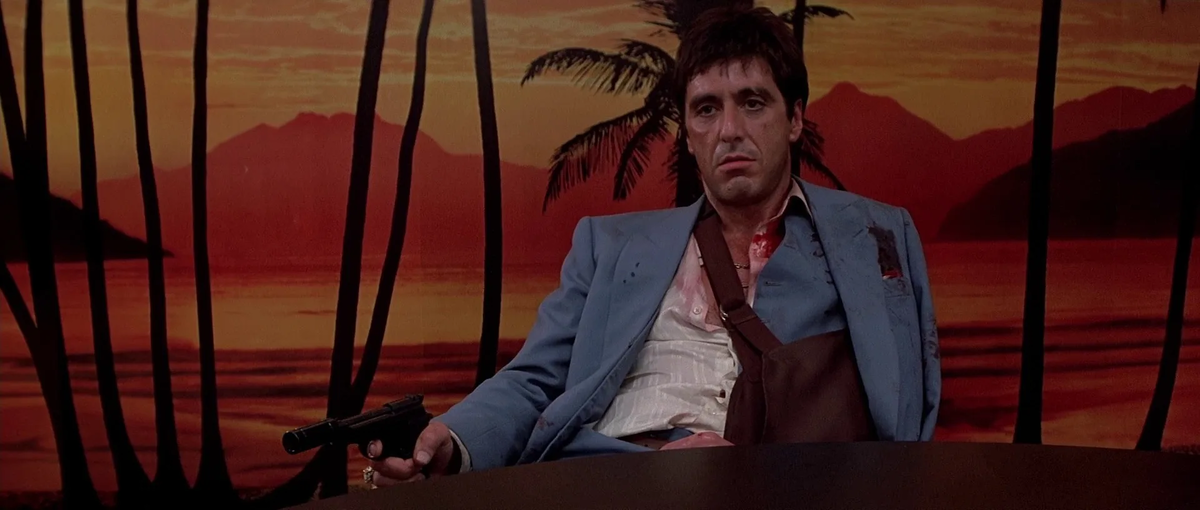 Вот такой фильм Де Пальмы и Аль Пачино. Даже сегодня этот фильм популярен в США. Почему? В первую очередь из-за харизматичного главного героя Тони Монтаны: Аль Пачино отлично постарался, передав нам образ хладнокровного и беспринципного убийцы, который достигает своей мечты, но затем погибает от ее несовершенства. Сам же Тони - олицетворение бандитов той эпохи США, уголовник со стажем, который к тому же гордится тем, кем он есть. И именно этим он и подкупает зрителя. Второй момент - эпоха тех самых дней: Майами, красивые женщины, музыка, машины - и все это служит фоном для событий фильма: преступники в виде кубинцев, колумбийцев и прочие, дерущиеся за рынок контроля наркоторговли, сами наркотики, которые становятся главной причиной взлета и падения Тони, сквернословие и острые словечки, и конечно же, финальный бой в конце, где Тони буквально взрывает на части своих врагов. Однако самое главное в фильме - это его смысл: человек, который хочет построить свою "американскую мечту", убивает в себе все человечное, превращаясь в животное, для которого деньги - символ счастья. "Америка - это не страна, это бизнес", говорил герой фильма "Казино", и данный фильм лишь подтверждает эти слова. Не зря же говорят "Власть портит", и именно это и происходит с главным героем: под влиянием денег и власти он готов пойти на все, даже на убийство своих друзей и родных, но в итоге, оставшись на вершине один, он падает стремительно вниз под влиянием самого главного наркотика - власти. Кто-то может воскликнуть типа "Не надо было курить дурь!", но на самом деле кокаин - самое меньшее из зол, главное же зло - система того самого общества и власть. Не будь бы тогда той самой либеральной системы времен Рейгана, не было бы и того наплыва эмигрантов из Кубы во Флориду, как и появления тогда кубинских, мексиканских и колумбийских наркокартелей. Положительных персонажей, за исключением матери Тони, в фильме нет, даже полицейские показаны продажными уродами, которые готовы служить наркоторговцам, вроде Фрэнка Лопеса, за кусок пирога. Также стоит упомянуть, что фильм Де Пальмы и Аль Пачино стал родоначальником целого поджанра гангстерских фильмов и игр, наиболее известной из них серии "GTA", где герой игр фактически списан с Тони. Более того, в 2006 году вышла игра по мотивам фильма, где Тони не погибает, а с помощью игрока добивается успеха. Именно в этом и заключается главный успех фильма "Лицо со шрамом". Хотите посмотреть, что бывает, когда ты хочешь добиться своей мечты всеми способами, в том числе с помощью криминала? Вам нравятся красивые места и кровавые драки? Нравятся антигерои и гангстеры? Тогда этот фильм точно для вас: вы не пожалеете, это я вам обещаю.