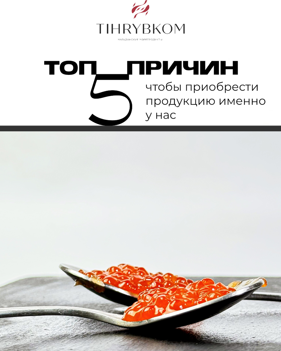 5 причин приобрести продукцию именно у нас ⭐️ Премиальное качество Предлагаем премиальную продукцию, которая за счет своих уникальных свойств приносит прибыль нашим оптовым клиентам. ⭐️ Легальность и свежесть продукции Имеем собственный флот и контролируем все этапы от добычи морепродуктов до их доставки заказчикам, что позволяет сохранить их полезные свойства. ⭐️ Доставка по всей России Осуществляем доставку во все уголки нашей страны ⭐️ Обновляемый ассортимент и большой объём поставок Круглый год радуем вас разнообразной продукцией ⭐️ Признанные рынком Нашими партнерами уже стали многие известные розничные сети, магазины и рестораны по всей России @tihrybkominfo