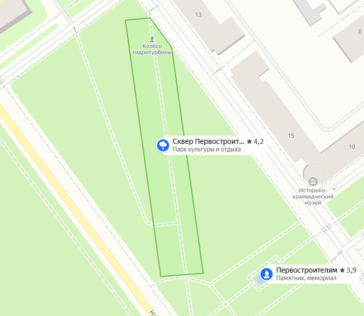 Как я уже говорил, Волжский - зелёный город. Его улицы, особенно старая часть, утопают в зелени. Здесь много парков и скверов, больших и маленьких. Одним из таких небольших скверов является сквер Первостроителей. Он находится на территории Прибрежного парка. Сквером, собственно, называется одна из аллей этого парка. Вход в сквер обозначен большим камнем с табличкой. Форма камня почему-то навеяла ассоциации с картиной Васнецова "Витязь на распутье" и русскими народными сказками. Помните это: прямо пойдёшь, налево пойдёшь, направо пойдёшь..? Почему-то, глядя на этот камень с названием сквера, возникли именно эти ассоциации. С другой стороны, в этом в самом деле что-то такое есть: пойдёшь налево - выйдешь на улицу Набережную, пойдёшь направо - прямо к краеведческому музею выйдешь, а пойдёшь прямо - попадёшь в сквер. Что ж, в музее мы уже были, по улице Набережной прошлись, стало быть наш путь лежит прямо. Это немного непривычно для Волжского, но сквер Первостроителей выглядит довольно н