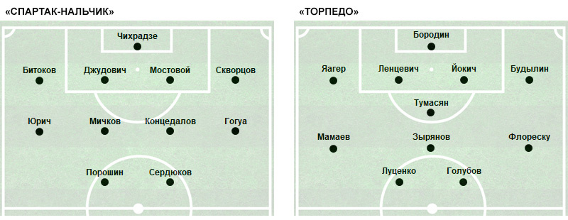«Торпедо»: Бородин, Яагер, Ленцевич, Тумасян, Йокич, Мамаев, Флореску, Зырянов - к, Будылин, Голубов (Пехна, 90+3), Луценко.
