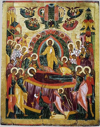 Успение Пресвятой Владычицы нашей Богородицы и Приснодевы Марии. Иконы Софии, Премудрости Божией (Новгородской). Чтимые иконы Успения Божией Матери: Киево-Печерская (1073), Овиновская (1425). Псково-Печерская (1472), Семигородная (XV) и Пюхтицкая (XVI). Моздокской (XIII), Ацкурской (I), Цилканской (IV), Влахернской (Груз.), Владимиро-Ростовской (XII), Гаенатской (XIII), Бахчисарайской, Чухломской (XIV), Сурдегской (1530), Тупичевской (XVII) икон Божией Матери. После крестной смерти Господа Иисуса Христа Пречистая Богородица около 15 лет жила в Иерусалиме, в доме Апостола Иоанна Богослова, попечению которого поручил ее Господь. Однажды, когда Божья Матерь по Своему обыкновению молилась на горе Елеонской, Архангел Гавриил возвестил ей близкую кончину. Ко дню Ее преставления собрались в Иерусалиме все апостолы, кроме Фомы, и были свидетелями успения Богородицы. 15 (28 по новому стилю) августа Пречистая Дева, возлежа на постели, окруженной горящими свечами, без малейшего страдания, как бы