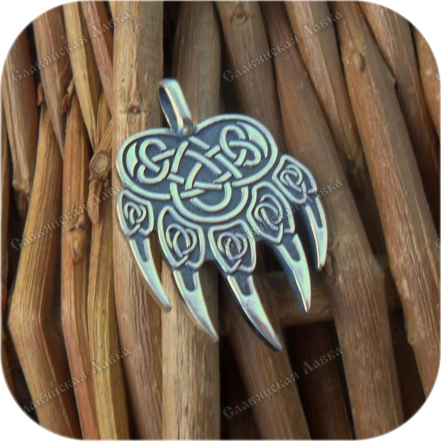 Серебряный кулон «Медведь» Благодарность мастеру: 2390 - Заявки можно скидывать на WhatsApp по номеру телефона 8-913-367-4141 Оберег из серебра «Медведь» обладает достаточно крупным размером и приятной тяжестью. На кулоне изображена стилизованная лапа медведя, который издревле имел тотемное значение у славян. Тут важно ещё заметить, что медведь был у наших предков не просто одним из тотемных животных. Его считали одним из воплощений бога колдовства Велеса. Предки почитали это животное за его удивительную силу, сочетающуюся с умом, скоростью и выносливостью. Вовсе не зря его, а не лося, волка, рысь, кабана или тигра называют хозяином Тайги. Догоняющий разогнавшуюся лошадь, легко заламывающий самого крупного лося, а при необходимости несущий его полутонную тушу многие километры, он вызывал вполне заслуженное уважение у наших предков. Его уважали и боялись, стараясь не называть настоящим именем (бер), а используя прозвище – потапыч, медведь, косолапый и многие другие. Не обделен медведь и