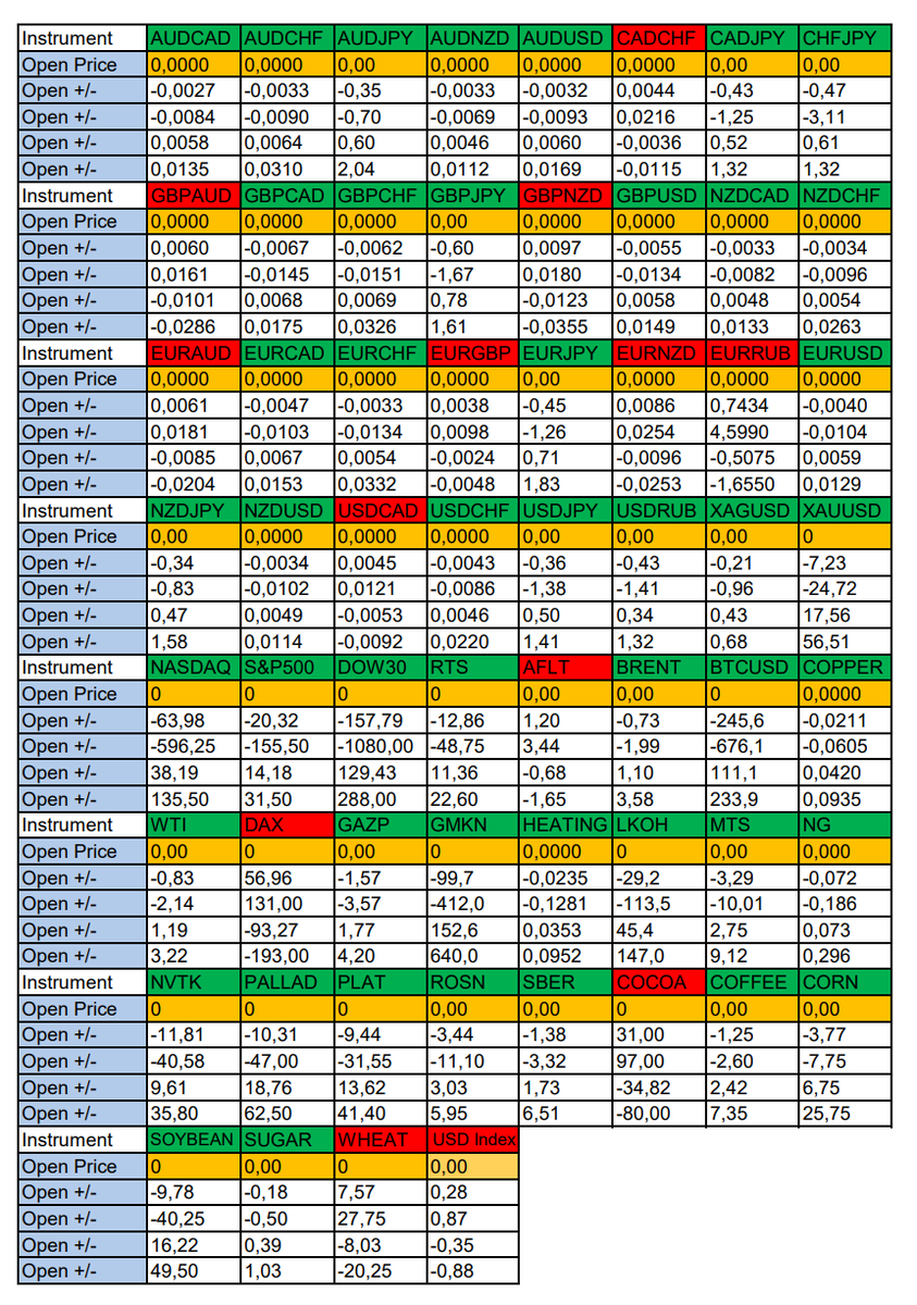 Весь перечень анализируемых активов указан ниже в общем количестве 60 инструментов. Здесь Вы найдете активы рынка Форекс, популярные активы Московской биржи, не менее популярные активы Чикагской биржи СМЕ и мажор криптовалютного сегмента - Биткоин, за которым следуют все альткоины.