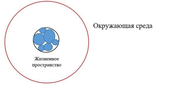 В дополнении к статье "Энергетическое поле потребностей. Часть 1" вот ещё одна схема (хотя похожую я уже размещала): В центре - личность со всеми своими шариками-потребностями. Черная граница – это, как вы помните граница осознавания. Но эта граница осознавания не соприкасается напрямую с окружающей средой. Между личностью и окружающим миром как таковым есть ещё жизненное пространство или картина мира. Мы уже как-то затрагивали с вами эту тему – любой системе для того, чтобы не только поддерживать свое существование, но и развиваться, нужна стабильность. Хотя бы временная. Но, как написано в Книге перемен: «Единственная вещь, которая никогда не изменится, - постоянная переменчивость всего». Окружающий нас мир меняется постоянно и очень быстро. Поэтому для того, чтобы обеспечить себе хотя бы небольшой островок стабильности, человек и формирует картину мира. Именно здесь хранятся его ценности, убеждения о том, что хорошо, а что плохо, как правильно, а как нет. Именно здесь хранятся