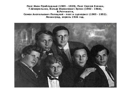Приехал Приблудный. Ходит по городу в одних трусах. Выходим из дому — Есенин, я и голый Приблудный.