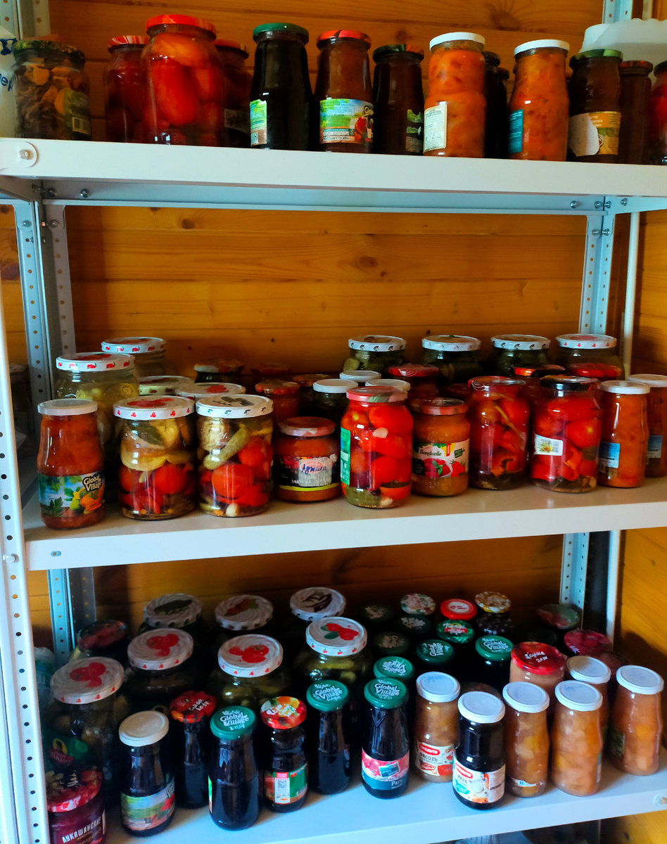 В конце августа усиленно делала заготовки. Оставшиеся ягоды и груши в компот и варенья, томаты с перцем в салаты, просто мариновала. Огурцов осталось совсем немного, поштучно для салата, в июле в разгар жары собирала ведрами, потом солила и мариновала, хватит. Ягоды все собрала, совсем мелкие оставила птицам. Хотела сократить трудозатраты, но все равно закрутила 3 стеллажа разных заготовок. Часть отправила в заморозку. Ещё много чего зреет в теплице. Даже нет сил и настроения возмущаться, что устала. И томатов в этом году выросло прилично. На фото часть заходов, по сортам сделаю отдельную подборку, от некоторых откажусь, некоторые увеличу, ещё экспериментальные дозревают, поздно посеяла семена. Потом вернулась к розам и клумбам. Обрезала розы Остина, что отцвели. Мне пришел заказ на осень. Подготовила место для новых роз в клумбе. Огромные кусты лаванды поделила корнями и пересадила вдоль дома бордюром. С другой стороны вот так Про розы. Некоторые отцвели, некоторые цветут, некоторые