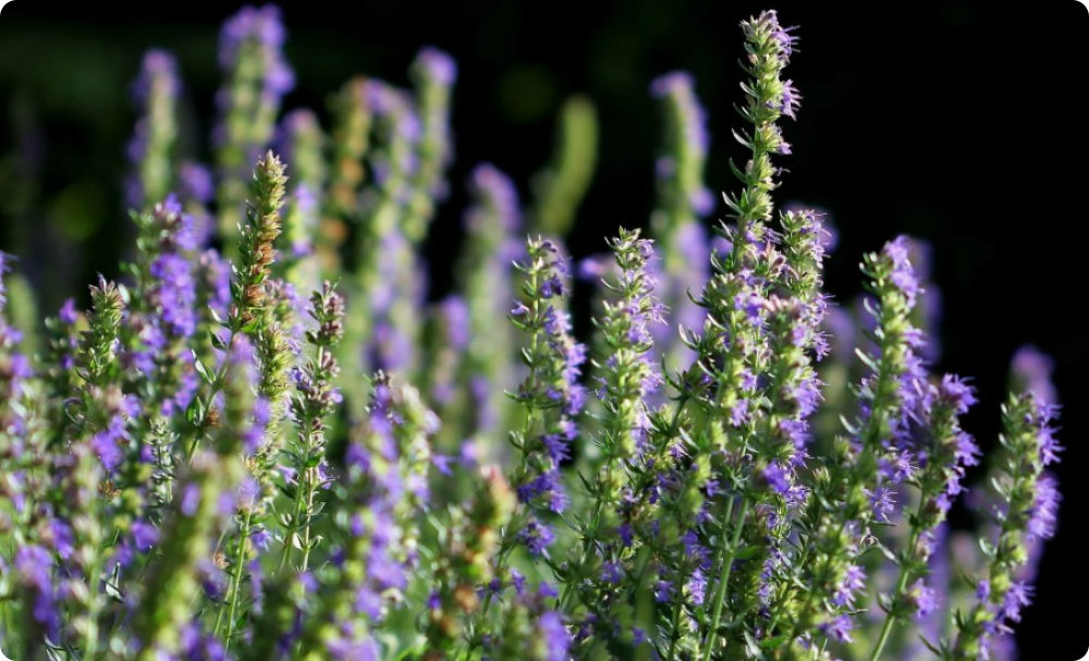 Иссоп лекарственный — это многолетнее ароматическое растение из семейства губоцветные. Иссоп широко используется в кулинарии, медицине и парфюмерии. Растение имеет пряный вкус и приятный запах. Иссоп обычно достигает высоты от 30 до 80 сантиметров. У него прямостоячие стебли с узкими листьями, покрытыми мелкими волосками. Цветки иссопа разных оттенков синего, фиолетового или розового образуют колосовидные соцветия. Цветет летом.
