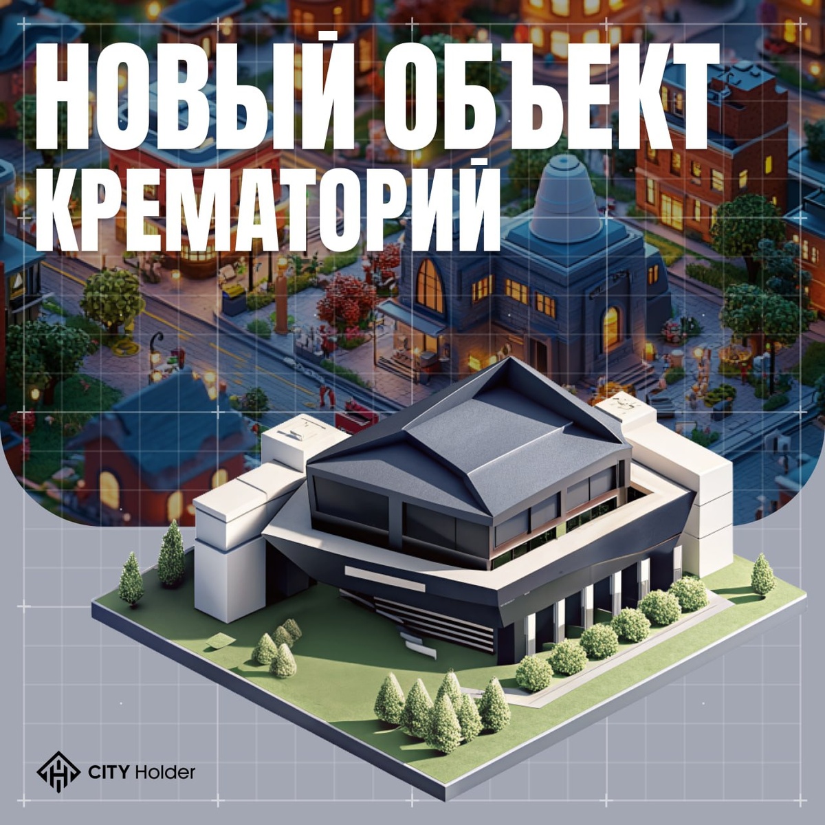 С сегодняшнего дня в игре доступно новое здание, которое можно найти в «Городских объектах». Крематорий обеспечит достойное прощание и станет частью инфраструктуры вашего города. Создатели вселенной CITY Holder делают виртуальный мир максимально приближенным к реальности, неотъемлемой частью которой являются и такие заведения.