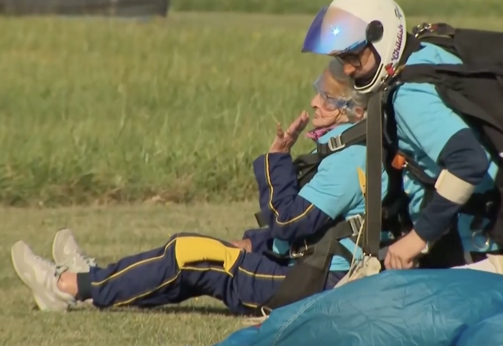Манетт Бэйлли несколько дней назад исполнилось 102 года. Бойкая старушка из Англии решила отметить свой день рождения, выпрыгнув из самолета. «Миссия выполнена! Я себя не опозорила! Когда дверь самолета открылась, я подумала, что отступать уже некуда — только выпрыгивать. Я шагнула вперед, в глазах немного помутнело, я зажмурилась. Кажется, мы летели с очень большой скоростью», — поделилась впечатлениями Манетт после приземления. Прыгала она в тандеме с инструктором. Бэйлли стала самой пожилой жительницей Великобритании, когда-либо прыгавшей с парашютом. Однако мировой рекорд 102-летняя бабушка не побила. В октябре прошлого года Дороти Хоффнер из Чикаго попала в Книгу рекордов Гиннеса, совершив прыжок в возрасте 104 лет. Спустя всего неделю Дороти умерла во сне в доме престарелых. Через несколько недель ее рекорд был побит Альфредом Блашке из Техаса — и ныне здравствующий пенсионер совершил прыжок в тандеме с инструктором в возрасте 106 лет! _______