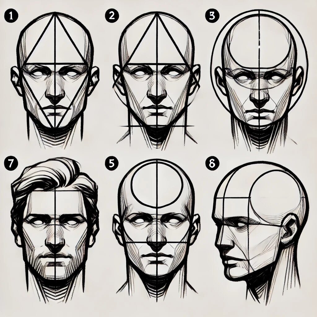 (Квадратная голова имеет чёткие углы и может придавать более решительное и твёрдое выражение.) - Triangular (Треугольная): Esta cabeza tiene un mentón ancho y se estrecha hacia arriba, creando un perfil distintivo.
