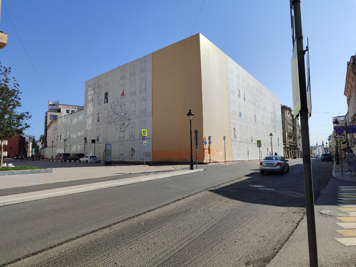 - Какая городская усадьба? – удивится читатель- Усадьба- это два этажа. Ну три. А тут на этих полотнищах пять этажей нарисовано.