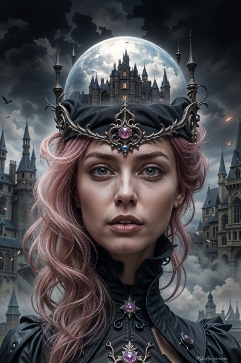 Тёмная Фея в апокалиптическом замке Диснея из нейросети Плейграунд