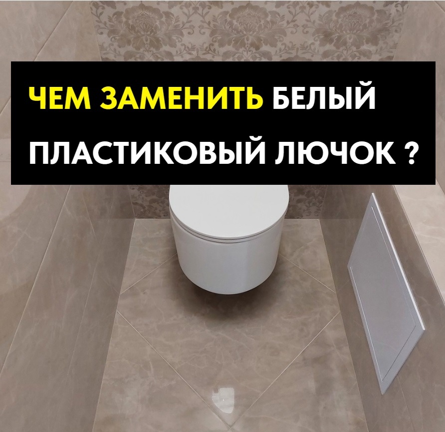 И правда, белый лючок на коробе смотрится хуже хорошо сделанного скрытого люка, с приклеенной на него плиткой. Но есть ньюанс - скрытый люк лучше устанавливать так, чтобы на нём разместились целые, не резаные плитки, что редко получается на небольших коробах в туалете. Так же каркас скрытого люка может быть 40 - 60 мм в глубину, что в небольших санузлах, где каждый сантиметр на счету имеет значение. Отдельная тема стоимость хорошего люка, который не провиснет после нескольких нажатий. Ремонт санузла предполагает большие затраты, поэтому большинство заказчиков пытаются сэкономить на таких "второстепенных" материалах, как ревизионный люк. Однажды делая ремонт туалета, в котором бежевая плитка сочеталась с чёрной, мне пришла мысль перекрасить белый пластиковый люк в чёрный цвет. Сейчас много аэрозольных красок предназначенных специально для пластика. Результат на фото. по моему получилось не плохо. В следующем ремонте заказчики решили отделать стены ванной комнаты и туалета плиткой модно