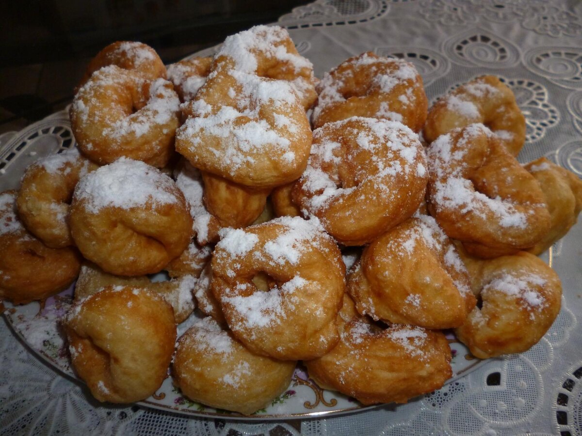 Ингредиенты: кефир- 0,5 литра; сахар- 0,5 стакана( можно меньше) ; сметана-1 столовая ложка; яйцо-1 шт; мука-3-3,5 стакана;соль- щепотка; сода-1/2 чайной ложки, растительное масло; сахарная пудра. Смешать все ингредиенты, кроме растительного масла. Муки добавлять столько, сколько вберет в себя кефирная масса. Сформировать пончики любой формы: шарики, палочки, колечки. Выпекать в большом количестве разогретого растительного масла, чтобы оно покрывало пончики. Сверху посыпать сахарной пудрой Приятного чаепития!