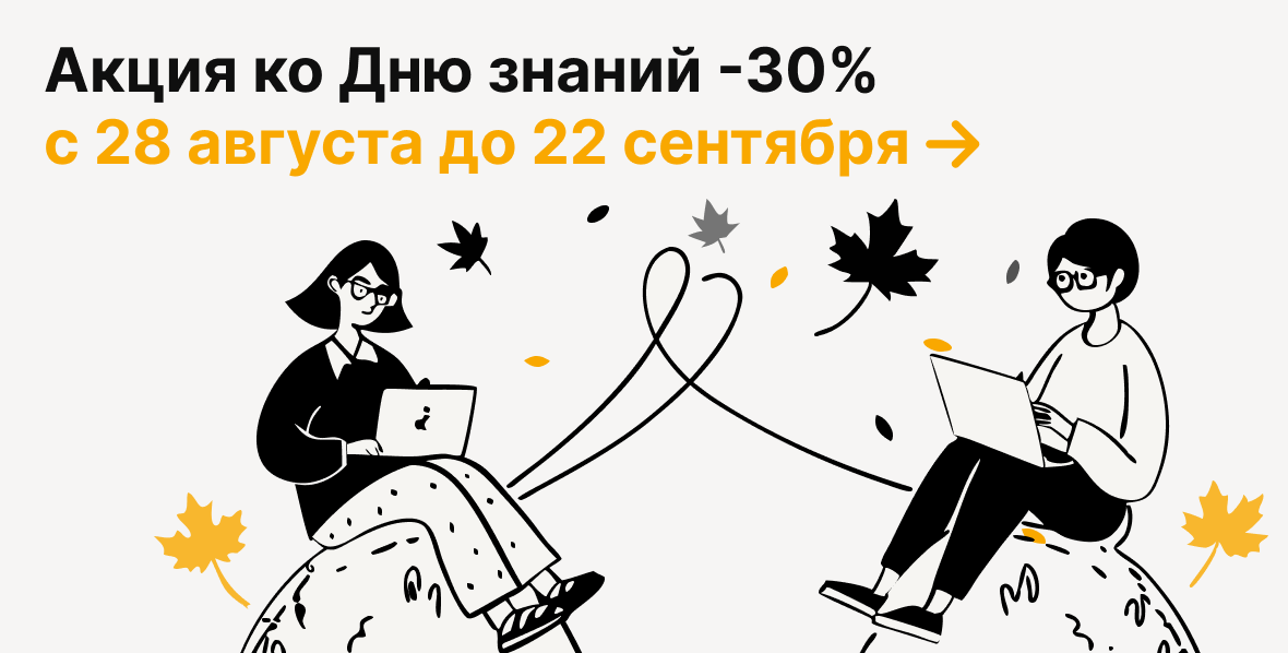 С 28 августа по 22 сентября вы можете получить скидку 30% на все курсы, а на наш флагманский курс «Фронтенд-разработчик» — 35%! Легкий для восприятия материал. Программы и курсы были созданы с помощью методологов. Обучение идет от простого к сложному, весь материал объясняется понятным языком.