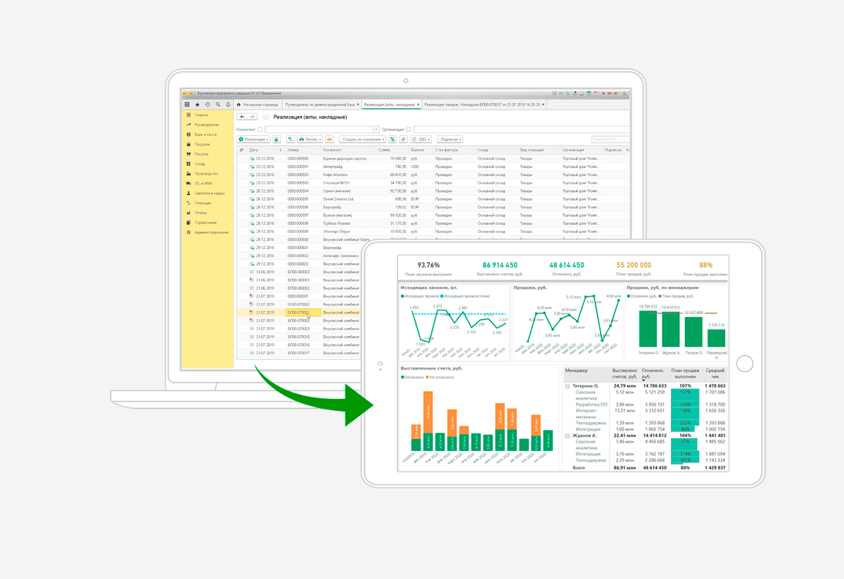 Свяжитесь с нами. Превратим таблицы из 1С в красивый дашборд.