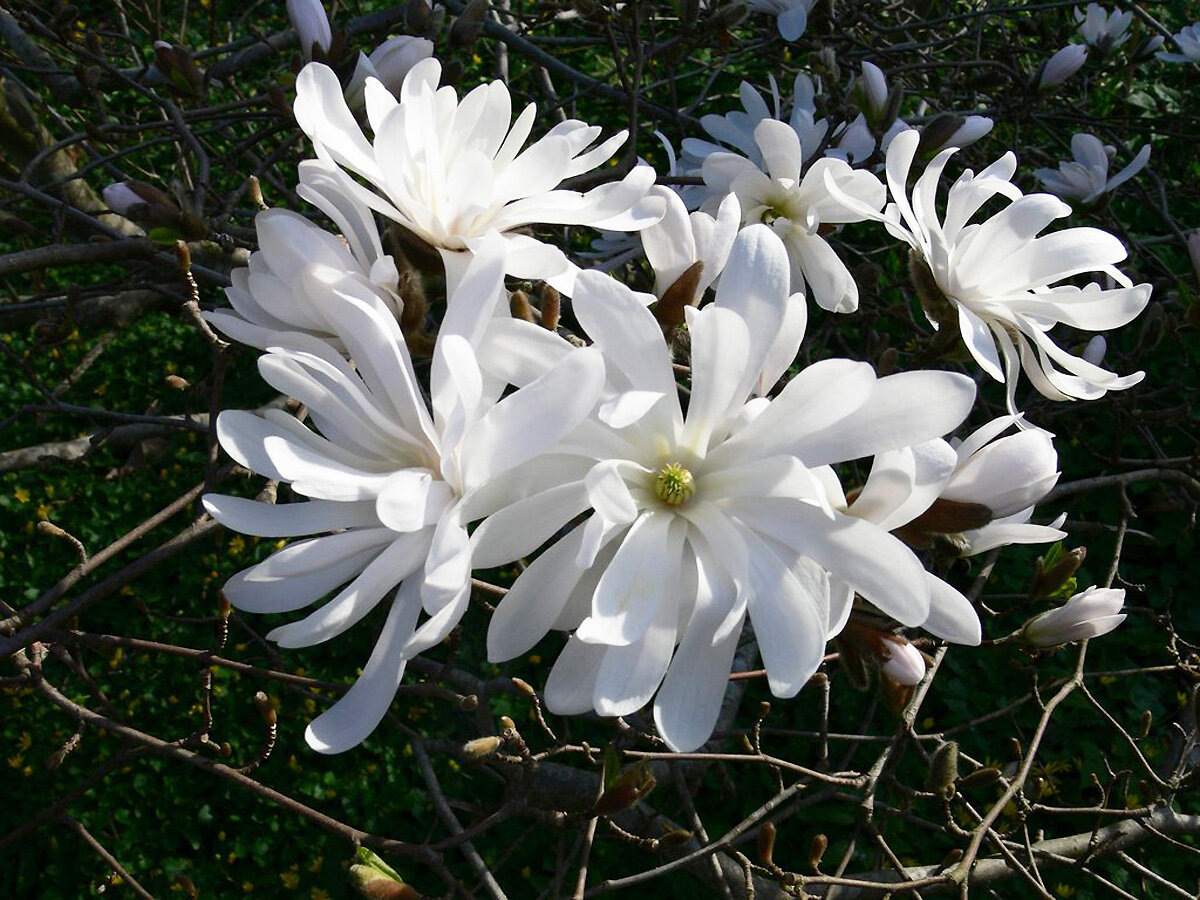 Пышные белоснежные шапки или соцветия, переходящие от белого к розовому, кремовому, лаймовому... Рассказываем о 5 сортах цветущих многолетников, которые подойдут как для одиночных посадок, так и для использования в ландшафтных композициях. Магнолия звездчатая — один из самых раннецветущих видов магнолии. Это медленнорастущий кустарник высотой до 2–3 м с широкой густоразветвленной кроной. Цветет в апреле до распускания листьев в течение трех недель. Цветки белые, широко раскрытые, с многочисленными узкими лепестками и сильным яблочно-медовым запахом. Сорт предпочитает защищенные от ветра солнечные или полутеневые места, влажную, плодородную рыхлую почву. Выдерживает морозы до –35 градусов, устойчив к болезням и вредителям. Подходит для небольших садов. Гортензия метельчатая Лаймлайт — кустарник высотой до 1,5–2 м. Цветет с июля по сентябрь, соцветия крупные, имеют вид широких конусов. Цветки сначала бледно-лаймовые, на солнце белеют, затем розовеют. Сорт морозостойкий: выдерживает темпе