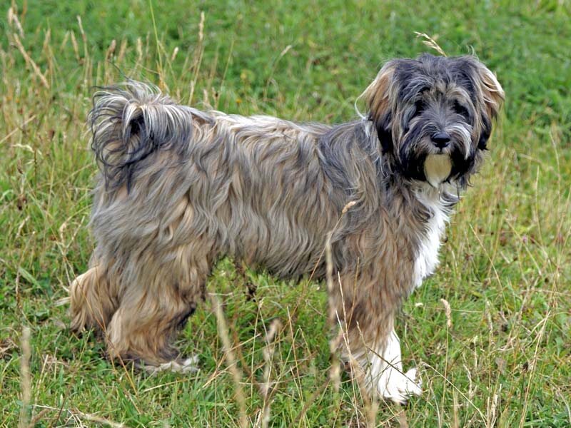 ID481 По квалификации FCI Тибетский терьер относится к 9 группе декоративных и собак-компаньонов и по сути терьером не является. А своему названию эти собаки обязаны европейским туристам, которым эти собаки напомнили терьеров, проживающих в Европе Тибетского терьера использовали в качестве пастушьей собаки, а более мелких представителей – как сторожевых в монастырях. На Тибете эти собаки зовутся цанг апсо (Tsаng Аpso). Другое их название на Тибете - «Маленькие Люди» - так высоко их ценили как компаньонов монахи и обычные люди. Счастливцы, обладавшие этими собаками ни за какие деньги не продавали их, так как считалось, что продать «Маленького человека» все равно, что продать свое счастье или члена своей семьи. «Маленькие люди» действительно небольшие. Тибетский терьер - среднего размера, очень лохматая, «квадратная собака», высотой в холке до 41 см, весят они примерно 8 – 14 кг.У них чуть выпуклый череп и пушистый хвост, который обычно находится на спине, забавно свернутый