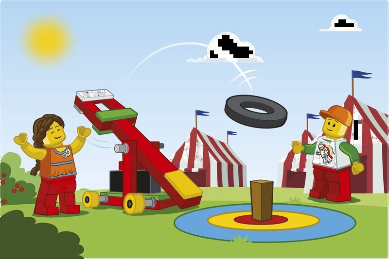 Серия - Простые механизмы Изучите и осознайте, что эффективность рычага зависит от расположения точки опоры, усилия и нагрузки. Время занятия: 45-90 мин. Сложность: начальная Классы 1-5 ( 5-10 минут ) Сэм и Салли любят ходить на ярмарку. Есть игра в катапульту, где игроки стреляют в цель, чтобы выиграть призы, набрав больше всего очков. Сэм и Салли любят соревноваться со своими друзьями и семьей! Давайте построим катапульту! ( 10-15 минут ) 1. Сначала соберите модель катапульты C3 и испытайте ее.