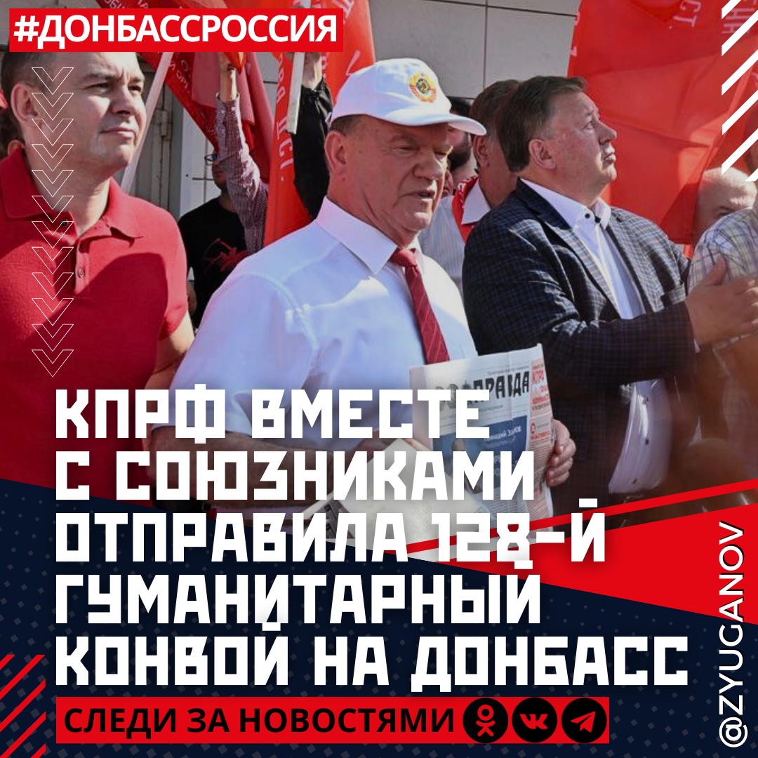 Друзья! Сегодня КПРФ вместе с союзниками и активистами отправила очередной, 128-й по счету, гуманитарный конвой для фронта и Победы.