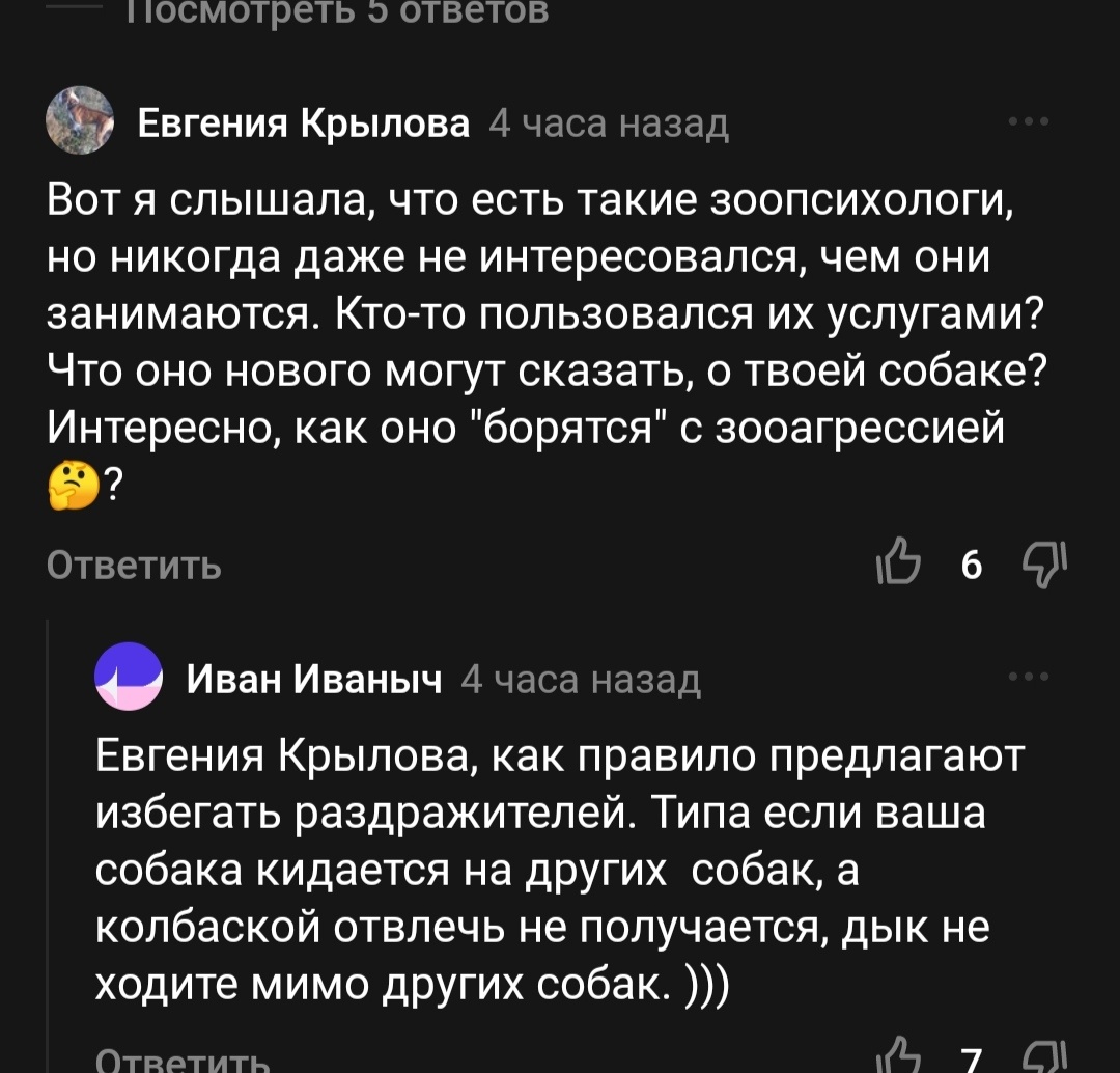 Так вот, в комментариях там был задан вопрос, относительно деятельности зоопсихологов, с акцентом на коррекцию зооагрессии. И другой комментатор, как исчерпывающий, дал ответ: